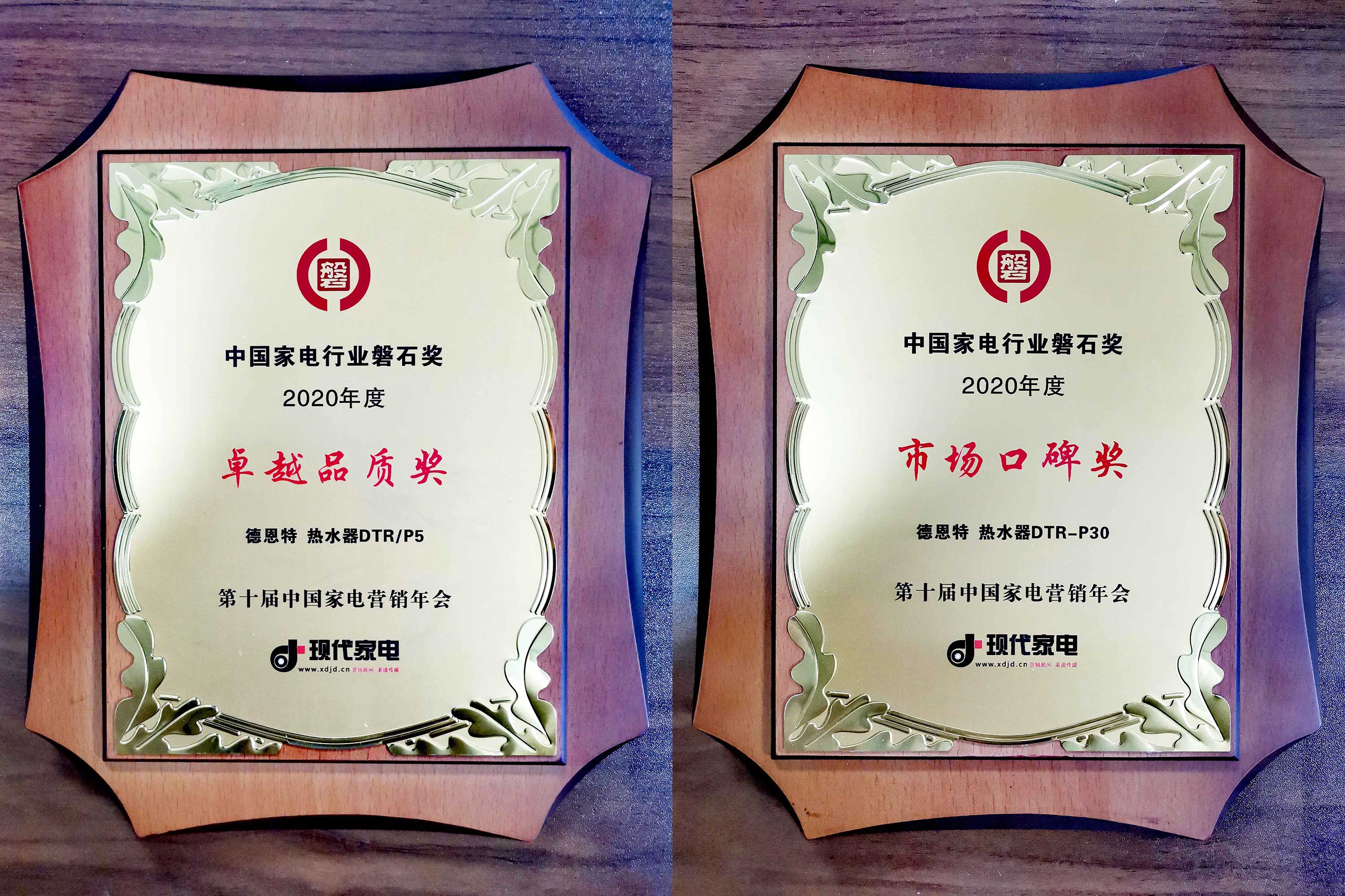 12月8日,第十届中国家电营销年会如约在杭州萧山与“勇克时艰,矢志不渝”的家电人共同揭开大幕。 12月10日上午,营销年会的两场重头戏,即新渠道峰会和磐石奖颁奖典礼,也如期举行。 我司领导应邀出席第十届中国家电营销年会,并凭借在快热式电热水器领域取得的优异成绩,斩获十届中国家电营销年会年度大奖【磐石奖】----市场口碑奖和卓越品质奖,可谓实至名归。