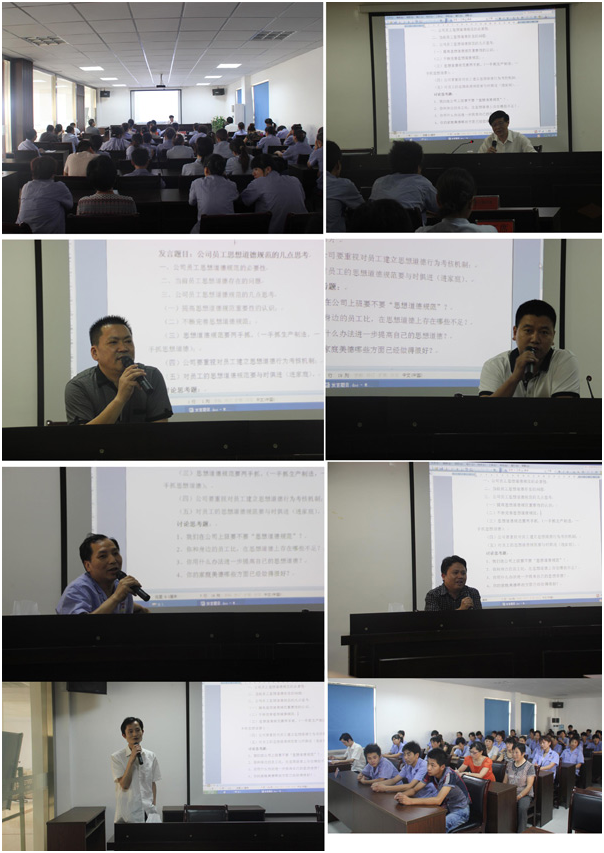 为进一步提升员工思想道德素养,挖掘员工内在潜力,培养员工胸怀远大的目标与崇高的理想,帮助员工树立正确的人生观价值观,使员工爱岗敬业,诚实可信,积极进取,勇于创新,实现和创造员工和企业共同成长,公司从七月四日起在公司多媒体室,将对全厂员工尤其是一线的员工,开展为期四周的每周一个下午的时间脱产集中培训。