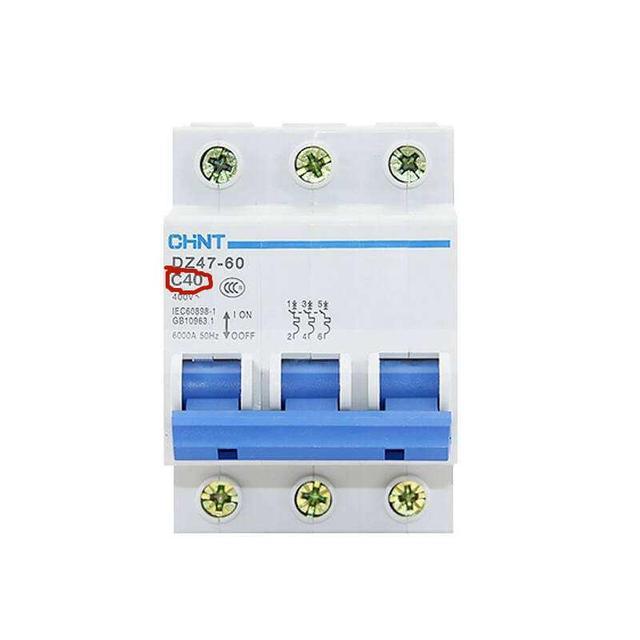 如果机器旁边的闸跳了,查看机器闸空气开关的额定电流是多少,如下图,也就是C后面的数字,再对应上表,如果不符合则要换相应额定电流的空气开关,就需要更换40A或者50A的空气开关。