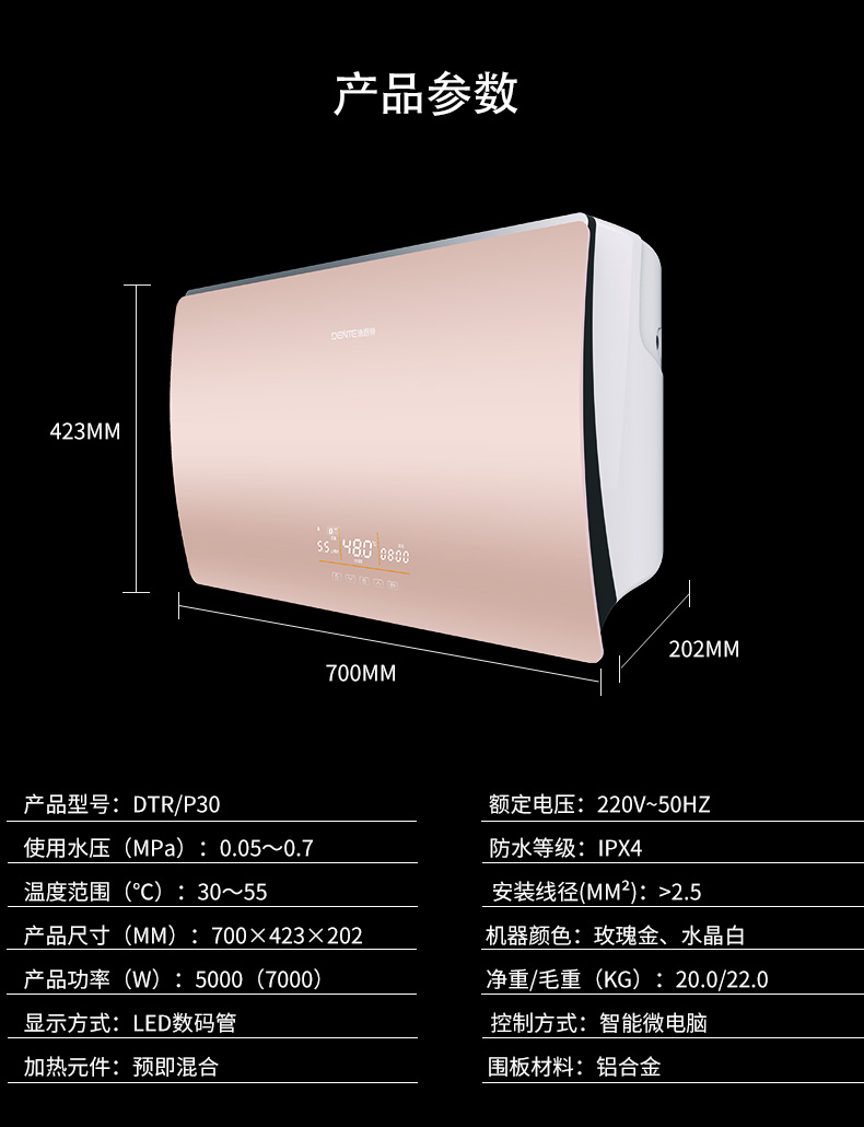 产品中心 > 速热电热水器系列> 速热式电热水器DTR-P30恒温出水